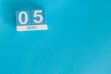 May 5th. Image of may 5 wooden color calendar on blue background.