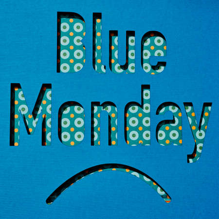 the text blue monday and a sad mouth cut out on a blue paper