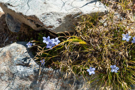 Violet flowers. Spring or summer time in norwegian mountains area