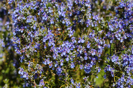 Rosemary in bloom. Selective focus. Copyspace.