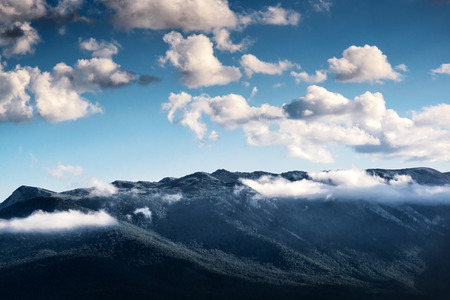 beautiful clouds over the mountains in Tasmania shot near Kunanyi also known as Mount Wellington
