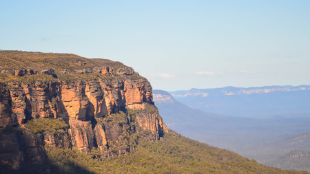 Mountain landscape cliff faces and forest nature background. Blue Mountains, Australia