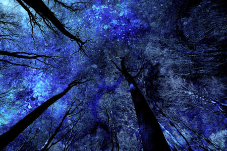 the photo of the winter forest in cold tones