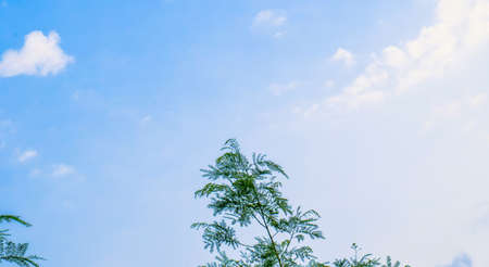 Blue sky with cloud and tree. Background of bright sun and a blue sky with clouds. The concept of hot and warming weather