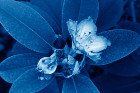 Blooming Rhododendron flower toned in trendy Classic Blue color of the Year 2020