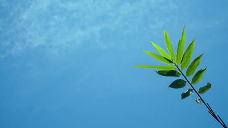 Bamboo leaves with blue sky background, there is space for your text design