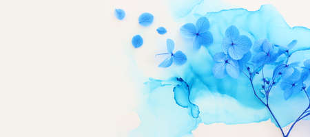 Beautiful abstract color gray and blue flowers on dark background and dark flower frame and blue leaves texture, blue background, dark blue graphics banner
