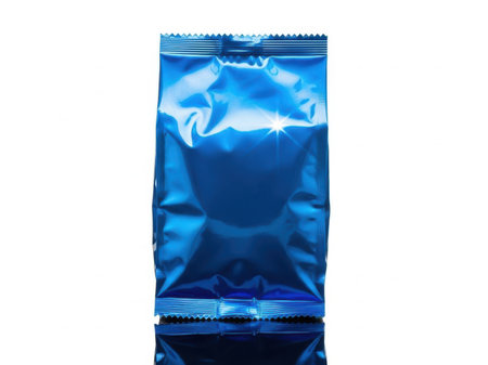 Blue foil sachet bag isolated on white background with clipping path.