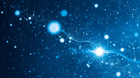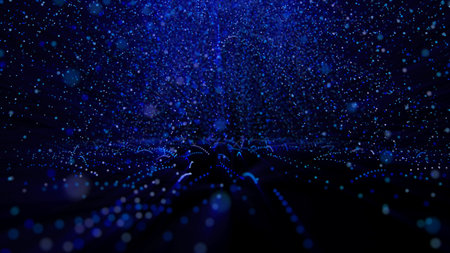 3d rendering of blue glowing particles in space with depth of field