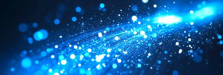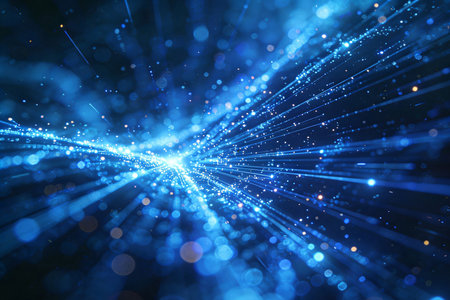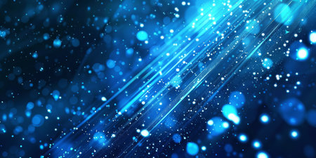 Dynamic blue light streaks with bokeh effects, perfect for modern tech and digital theme representations.