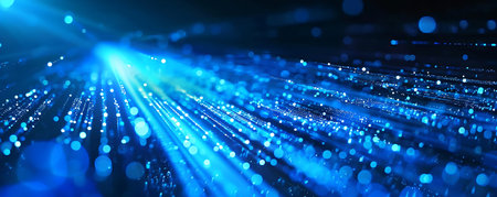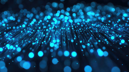 Fiber Optic Cables with Brilliant Blue Lights Abstract Background for Digital Network Data Flow
