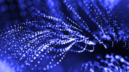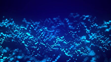abstract background with blue glowing particles, 3d rendering computer digital illustration