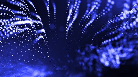 3d rendering of abstract blue background with glowing particles like micro world science fiction with depth of field and bokeh. Blue light rays like laser show for bright festive presentation