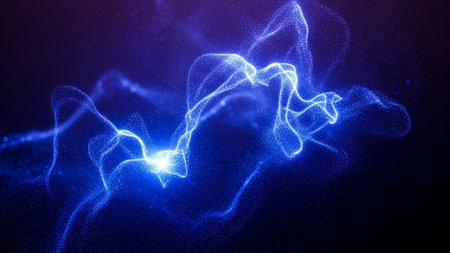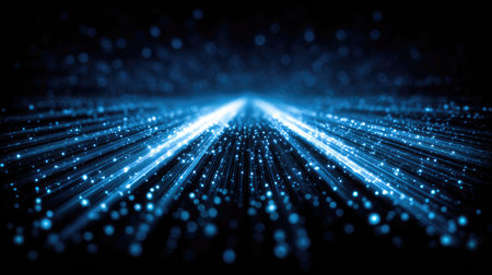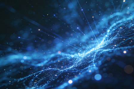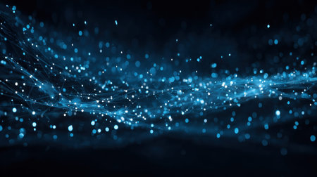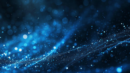 A captivating abstract background featuring shimmering blue light particles and flowing digital waves, ideal for technology themes and modern design projects.