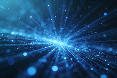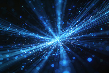A captivating abstract background featuring radiant blue light rays and sparkling effects. Perfect for technology, science, and digital art projects.