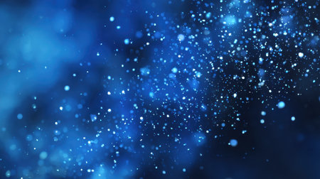 Microcosm. Glow blue particles on blue background are hanging in air for bright festive presentation with depth of field and light bokeh effects. Version 9