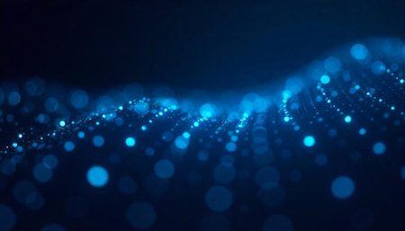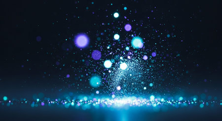 abstract blue background with glowing particles and bokeh defocused lights