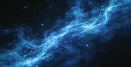 Surreal glowing blue smoke swirling in a cosmic background with sparkling star like particles