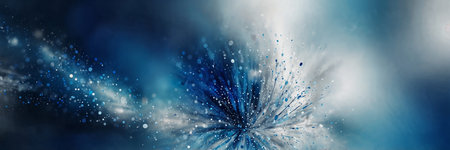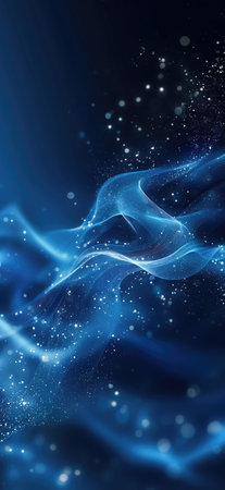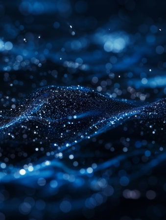 Abstract blue background with bokeh effect and glittering particles.