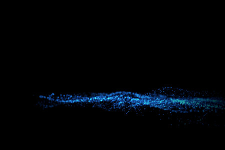 Abstract blue particles wave on black background. Futuristic technology style.