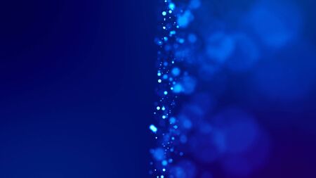glow blue particles on blue background are hanging in air for bright festive presentation with depth of field and light bokeh effects