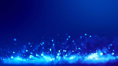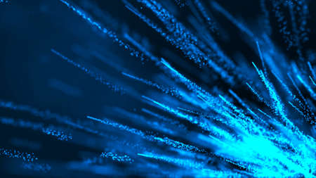 3d rendering of abstract blue background with glowing particles like micro world science fiction with depth of field and bokeh. Blue light rays like laser show for bright festive presentation