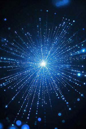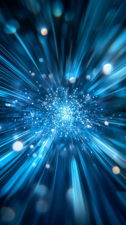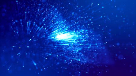Blue abstract light burst with bokeh effect, digital data concept