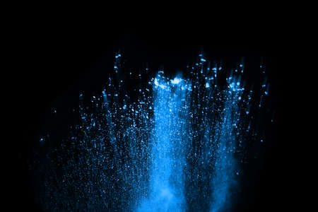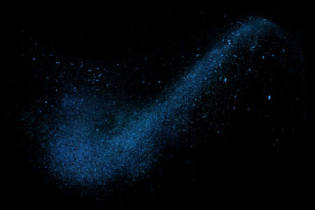 abstract blue powder splatted background,Freeze motion of color powder exploding/throwing color powder,color glitter texture on black background.
