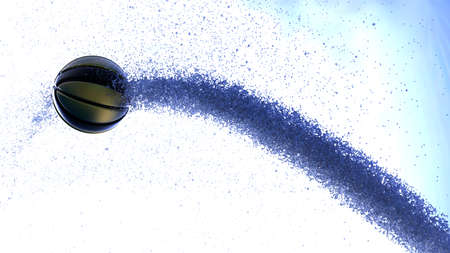 Black-Gold Basketball with Diamond Water Particles under Blue Sky Lighting Background. 3D illustration. 3D high quality rendering. 3D CG.