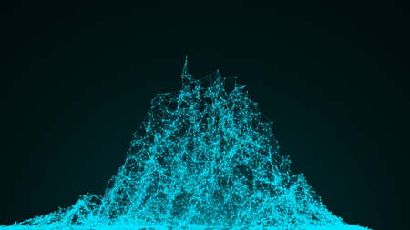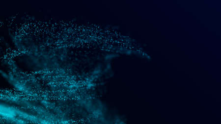 Abstract blue digital particles wave on dark background. 3D Rendering