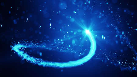 Blue light streaks and fairy sparks. Computer generated abstract background