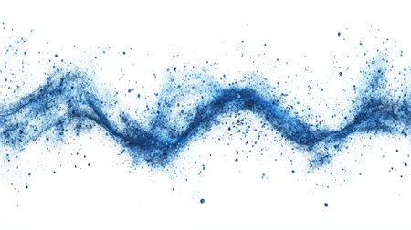 Vibrant abstract design featuring a blue wave with splashes, evoking fluid movement and dynamic energy. Ideal for creative projects and backgrounds.