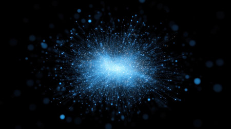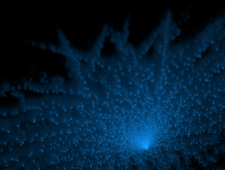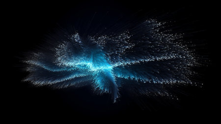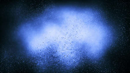 Exlplosion of glowing blue particles with motion blur. Computer generated image