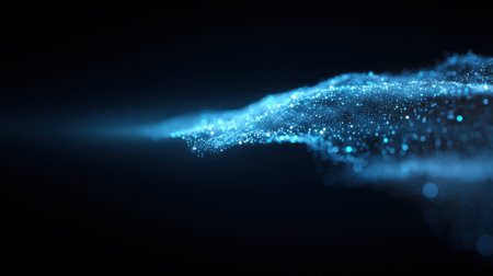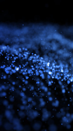 Soft-focus abstract particles glowing in blue, resembling a dust field or magical data cloud in motion.