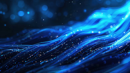 Flowing abstract blue waves with digital dot patterns forming smooth curves in motion.