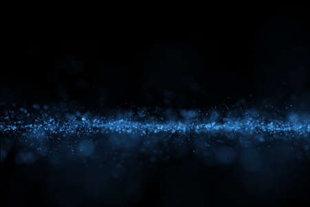 phantom blue particles abstract background with flare shining floor particle stars dust.Beautiful futuristic glittering in space on black background.