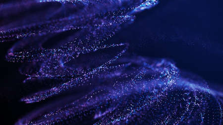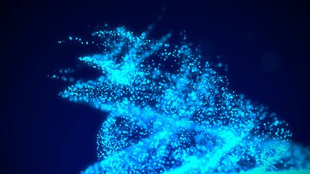 Abstract vortex particles background. Dynamic blue wave moving in explosion. Wormhole shimmering star dust. 3d rendering.