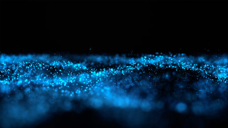 Abstract background of shining particles, digital wave, sparkling blue particles. Beautiful blue floating particles with shine light. 3D Rendering