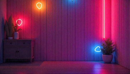 Blue and Pink Glowing Neon Lighting Doors in The Dark Room