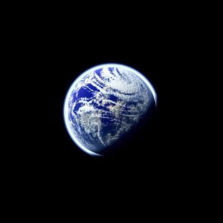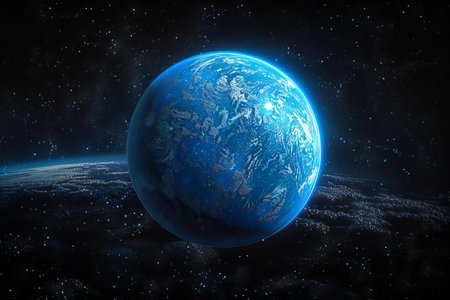 Earth glows brightly in the dark expanse of the universe, surrounded by distant stars.