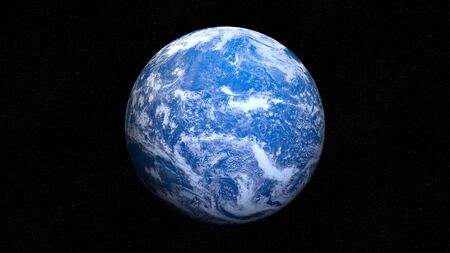 3D rendering of fantastic blue water planet with white atmosphere in outer space. Elements of this image were furnished by NASA.