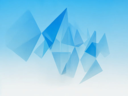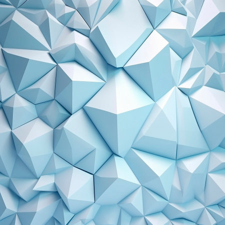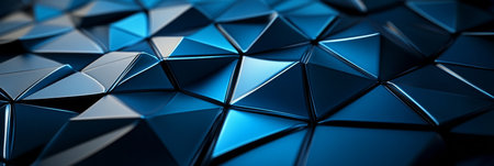 Abstract Blue Geometric Mosaic of Triangles with Reflective Textures and Modern Tech Design Elements