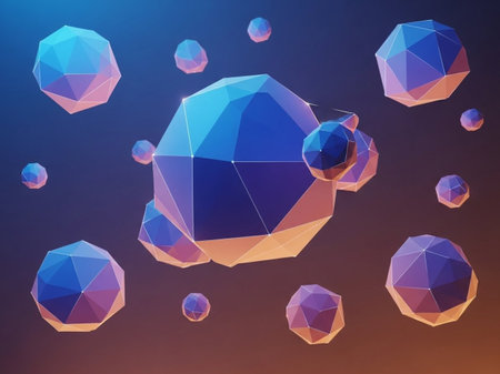 3d rendering of abstract colorful geometric shapes in low poly style.