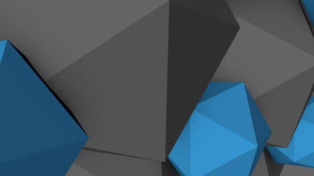 3d rendering of abstract geometric shapes in low poly style blue color background