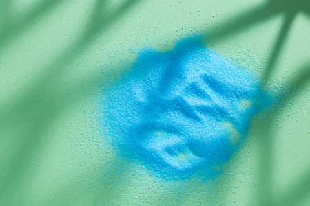 Bluekinetic sand texture with copy space. Creativity, education and play games for children. Close up.