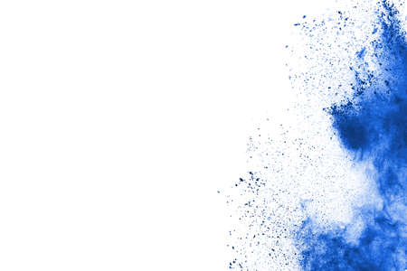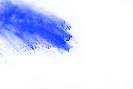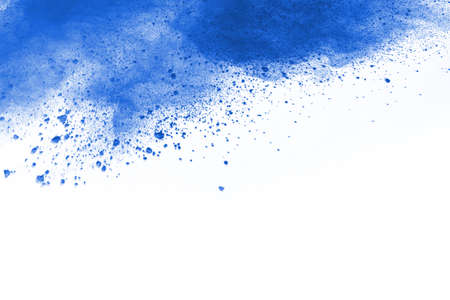 Blue color powder explosion on white background. Colored cloud. Colorful dust explode. Paint Holi.