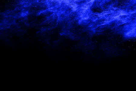 abstract blue powder splatted background,Freeze motion of color powder exploding/throwing color powder,color glitter texture on black background.