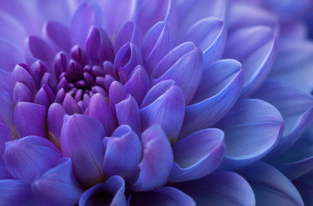 This close-up showcases a radiant purple chrysanthemum, its numerous petals forming a detailed, textured pattern. The image displays a soft focus with a gradient of colors from light edges to deeper hues. This aesthetic is suitable for various uses, including editorial content, design projects, and decorative purposes.