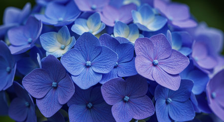 Beautiful pastel blue and purple hydrangea flowers in bloom, close up. Summer blossoms floral texture for background