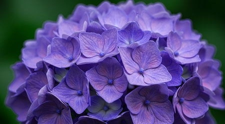Intricate pattern of vibrant purple and blue hydrangea flower petals arranged in a close-up view. The petals showcase fine details of veins and textures.